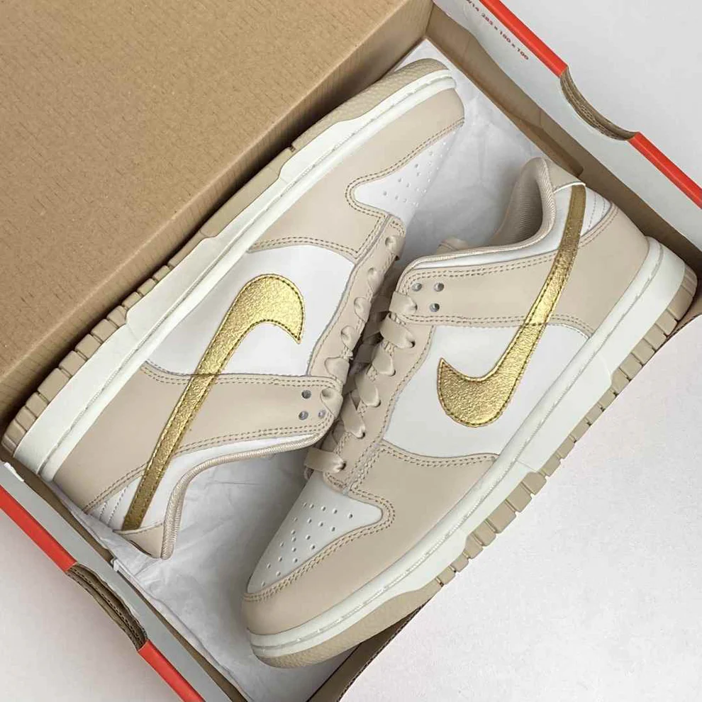 Aggiorna le tue sneaker con le Nike Dunk Low Metallic Gold Swoosh. Con una tomaia interamente in pelle decorata con uno swoosh dorato scintillante e il marchio Nike dorato sul retro. Acquista queste Nike Dunk beige dorate da donna esclusivamente su Ukers!